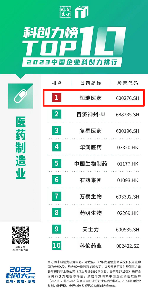 创新再获认可,利来医药蝉联“中国企业科创力排行”医药制造业榜首